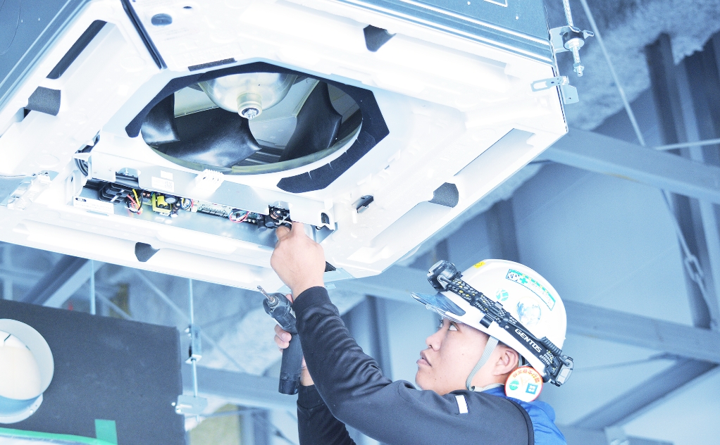 空調機器の設置が終わったら配管工事と配線工事を行います。そして、動作環境を確認するために試運転をします。問題なく稼働したら、工事完了となります。